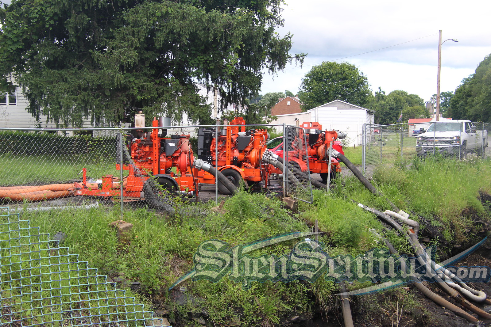 Pumps, brought in to alleviate flooding issues in June, were operating throughout the night and into Tuesday afternoon at the west end of the main section of the borough.